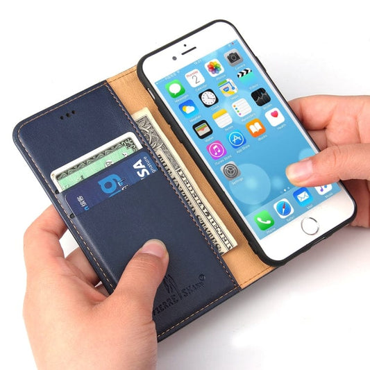 Étui en cuir bleu nuit à rabat horizontal avec support et fentes pour cartes iPhone 7 / 8 / SE 2020 / SE 2022